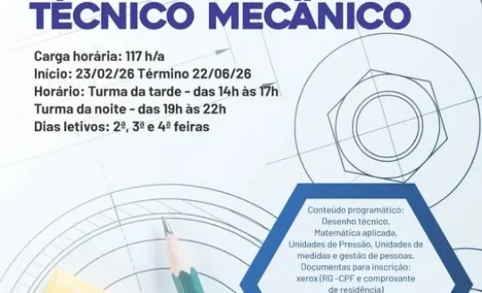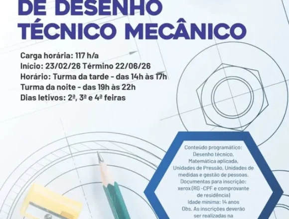 Aprenda a compreender e aplicar desenhos técnicos com base sólida em matemática, medidas e gestão de pessoas! Período: 23/02/26 a 22/06/26 Turma da tarde: 14h às 17h Turma da noite: 19h às 22h Às ...