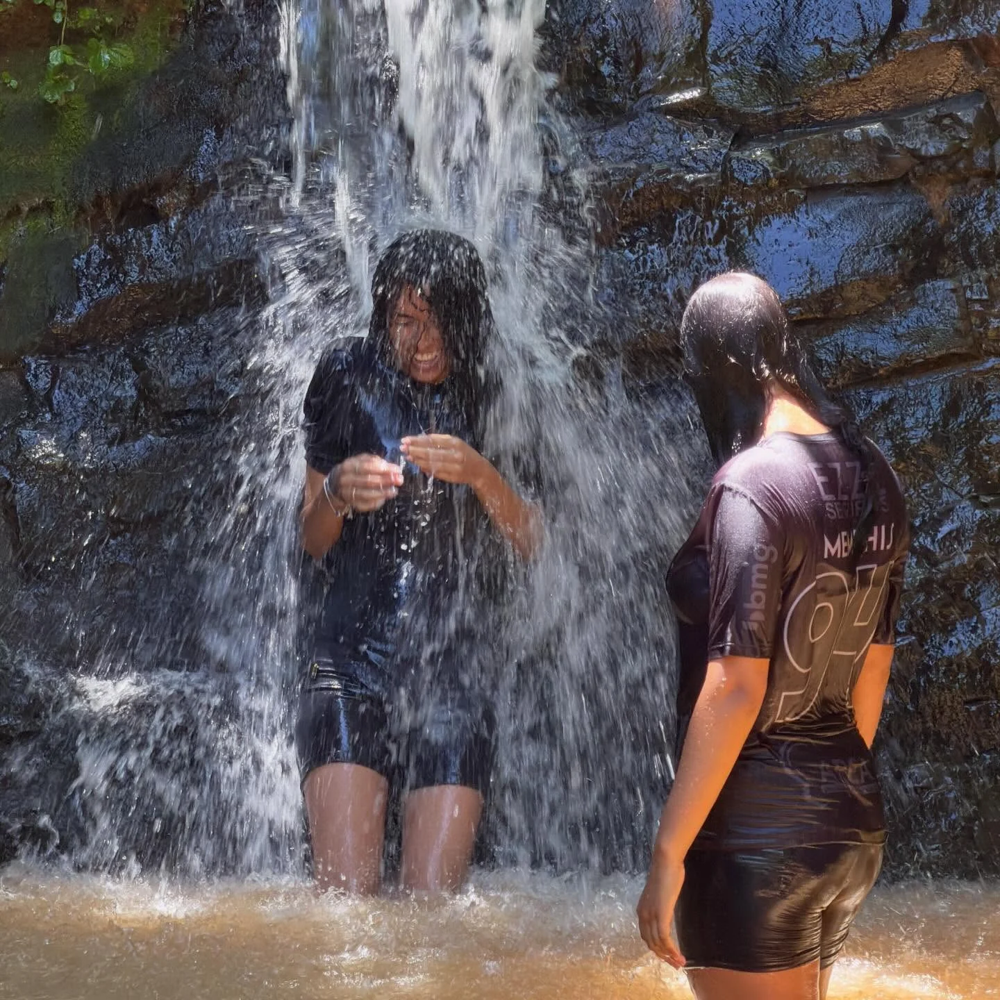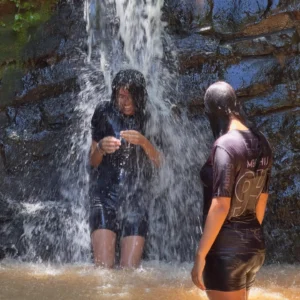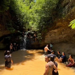 A caminhada foi encerrada na Cachoeira da Gruta, proporcionando aos participantes um momento de descanso e contemplação da natureza.