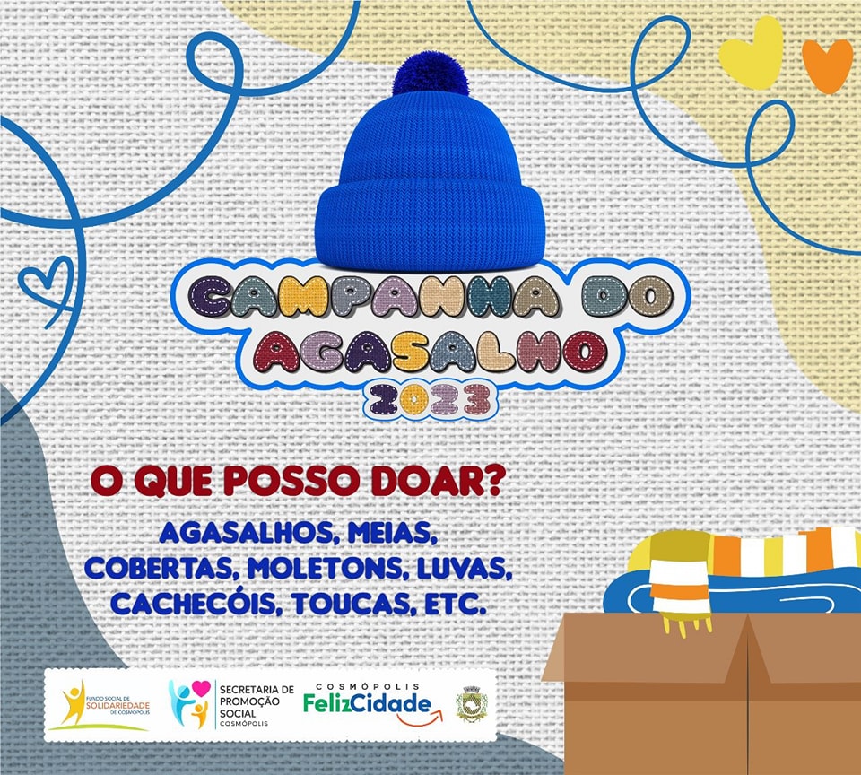 A Prefeitura de Cosmópolis, por meio da Secretaria Municipal de Promoção Social e Fundo Social de Solidariedade, inicia a ‘Campanha do Agasalho 2023’.