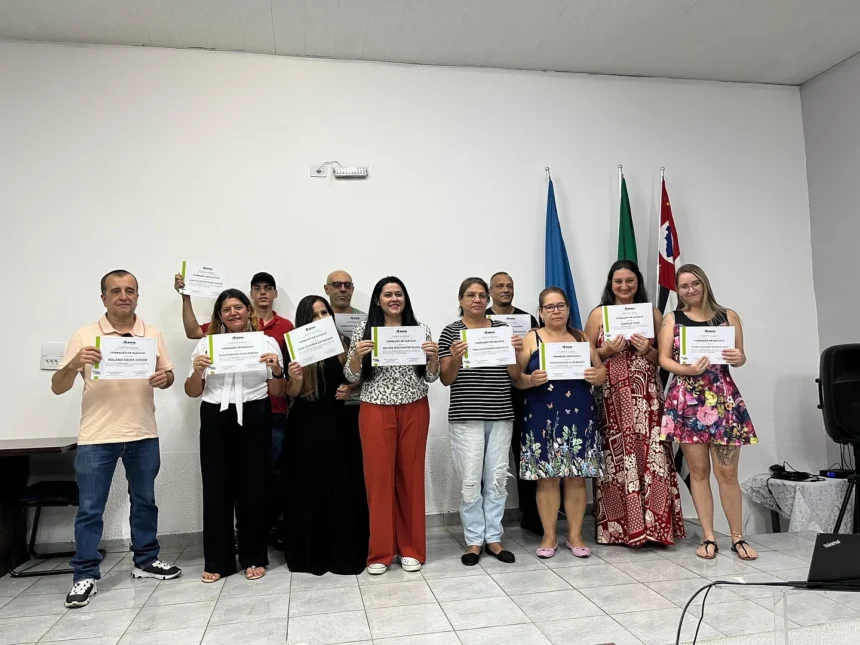 Na tarde desta segunda-feira (19), 11 cosmopolenses participaram da cerimônia de formatura do curso de ajudante de açougue, promovido pelo Arena Atacado. O evento aconteceu no auditório da Associação Comercial e Industrial de Cosmópolis (ACICO).