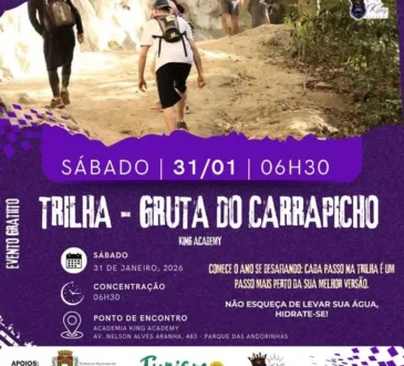 Comece o ano se desafiando! Cada passo na trilha é um passo mais perto da sua melhor versão. Sábado | 31 de janeiro de 2026 Concentração: 06h30 Ponto de encontro: Academia King Academy Av. Nelson Alves ...