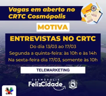 Nesta sexta-feira (10), o CRTC – Centro de Referência do Trabalhador de Cosmópolis – em parceria com a empresa Motiva, realizou uma palestra para os inscritos nas vagas de operador de ...