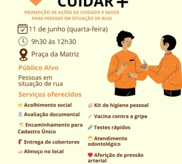 A prefeitura, por meio da Secretaria de Promoção Social e Ação Comunitária, promoverá no dia 11 de junho (quarta-feira), das 9h30 às 12h30, ações de cuidado e saúde para pessoas em situação de rua. ...