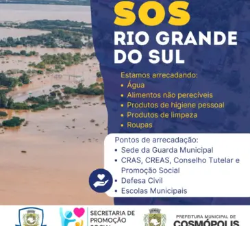 A Prefeitura de Cosmópolis, por meio das Secretarias Municipais de Promoção Social e Segurança Pública e Trânsito, está arrecadando mantimentos e materiais de higiene pessoal e limpeza para as vítimas ...