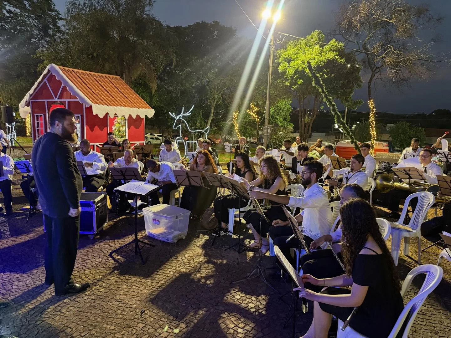 A abertura contou com a chegada do Papai Noel, que trouxe alegria às crianças, além da bela apresentação da Banda Municipal, enchendo a praça de música e magia. O público também se emocionou com o coral de 100 vozes da Escola Villa-Musical, que deu um show de talento com clássicos natalinos.