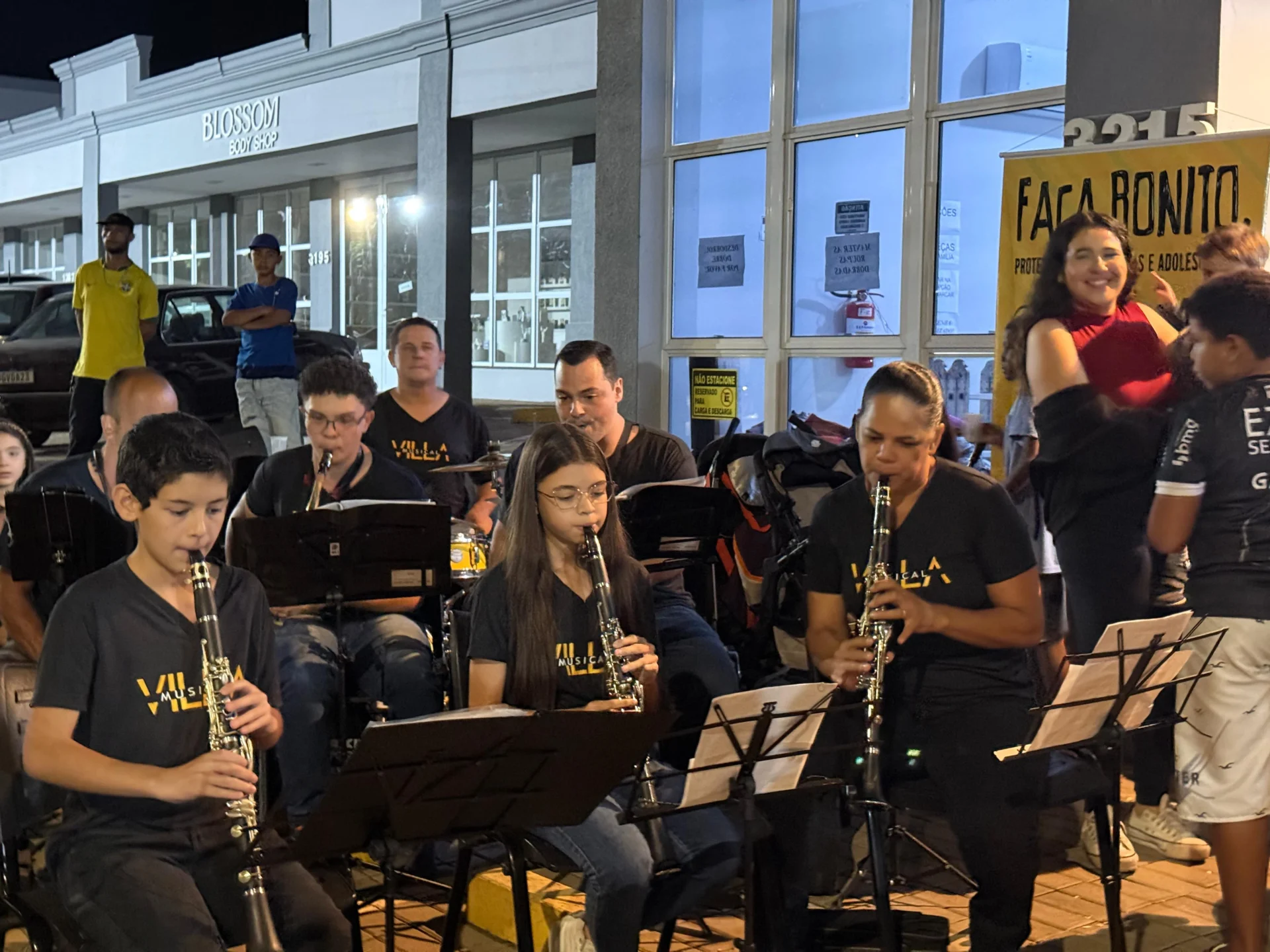 A Escola Villa Musical animou o evento com uma linda apresentação da banda.