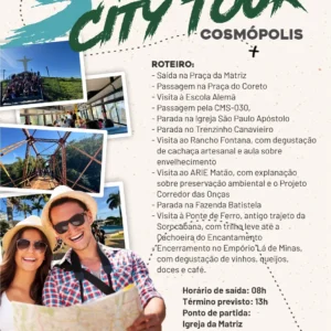 Após o sucesso das duas primeiras edições, vem aí o 3º City Tour de Cosmópolis, um passeio gratuito de ônibus destinado à população e visitantes no dia 28 de Setembro.
