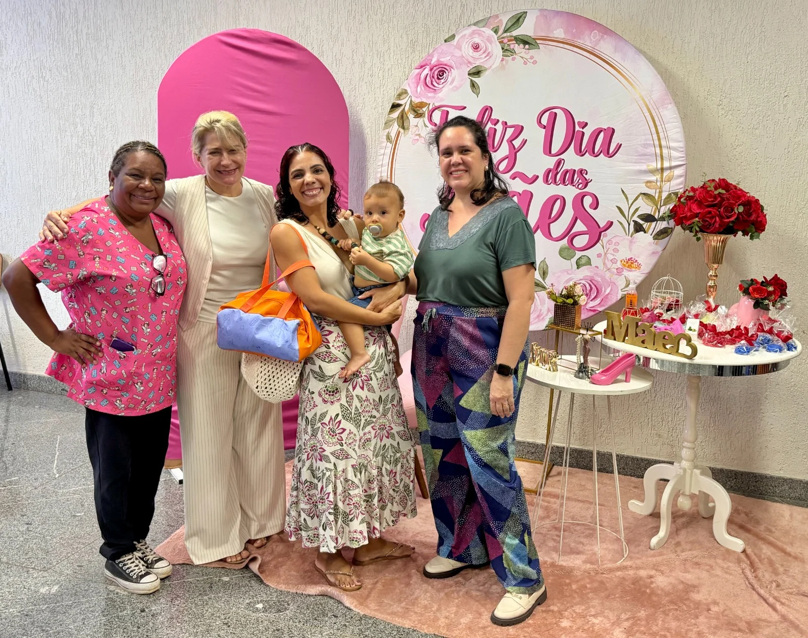 A programação incluiu uma palestra com a Psicanalista Clínica Darlene Silva, que abordou o tema “Dia de cuidar de mim”, trazendo reflexões importantes sobre o autocuidado na maternidade e a saúde emocional da mulher. As participantes também puderam desfrutar de momentos de bem-estar e sorteios de brindes, tornando a manhã ainda mais especial e acolhedora.