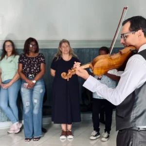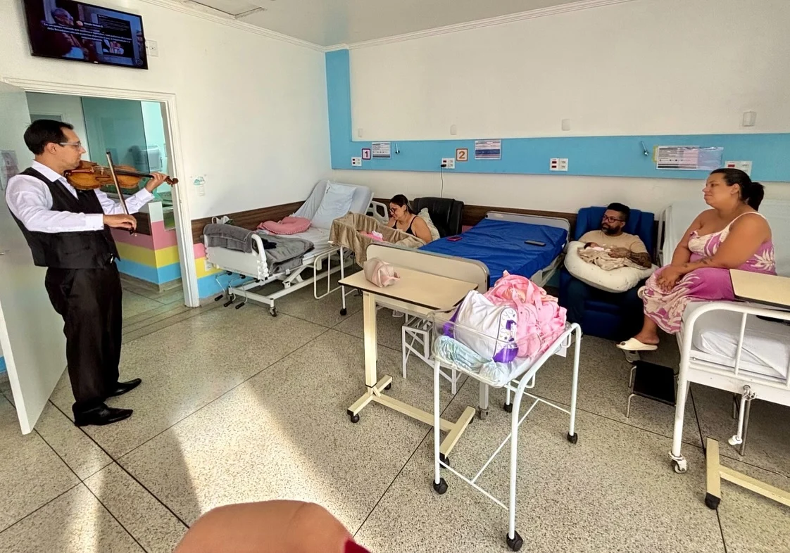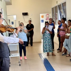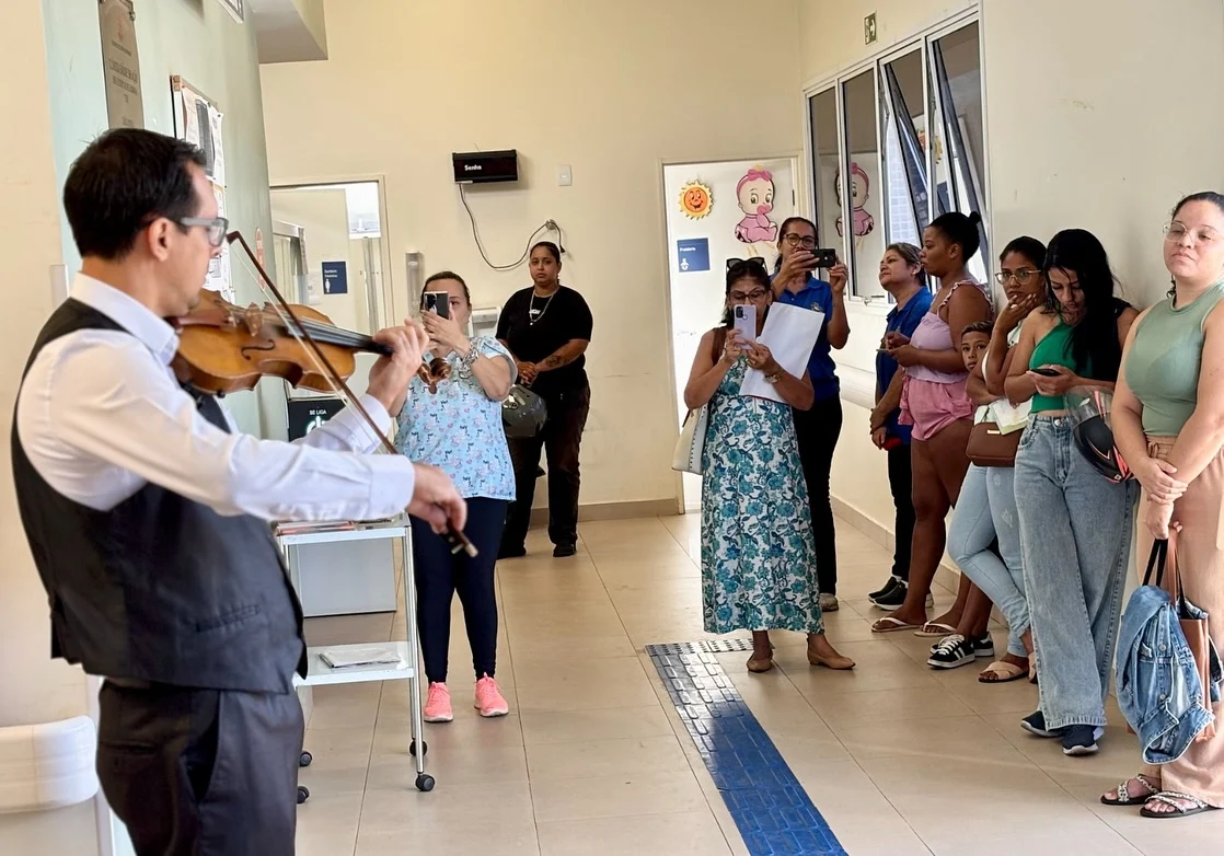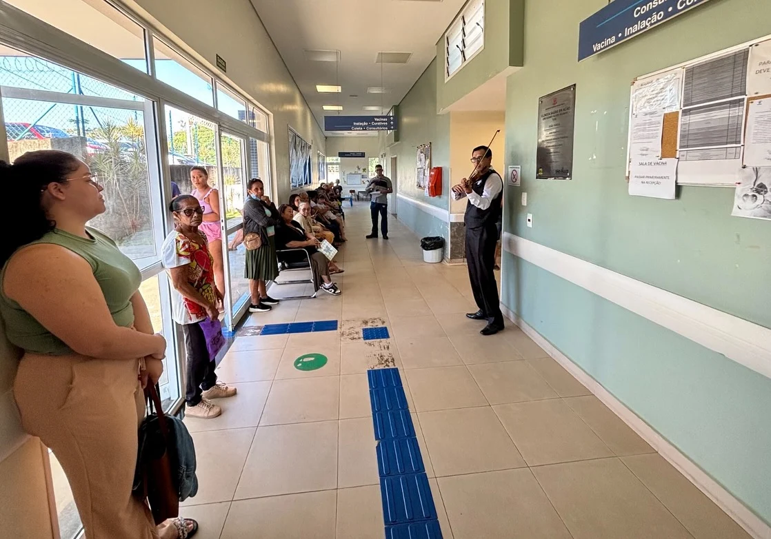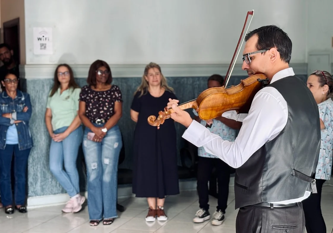 Com apresentações musicais do professor Jonathan Santos, integrante da Escola Villa-Musical, os espaços de saúde foram tomados por clássicos e sucessos populares interpretados ao violino.