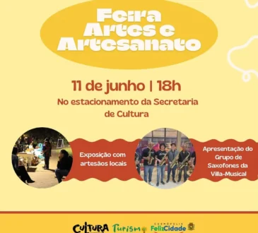 Feira de Artes e Artesanato acontece nesta quarta-feira (11), a partir das 18h, no estacionamento da Secretaria de Cultura!