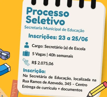 A Prefeitura de Cosmópolis, por meio da Secretaria Municipal de Educação, informa que estão abertas as inscrições para o processo seletivo para o cargo de Secretário(a) de Escola. São 5 vagas ...