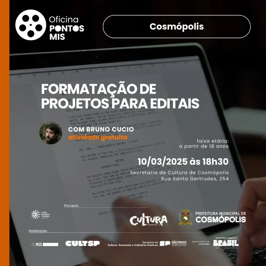 Sinopse: A oficina busca capacitar os participantes na elaboração de projetos de produção audiovisual para editais públicos. Através de exemplos, a oficina abordará os textos e arquivos requisitados na maioria dos editais, explorando a finalidade de