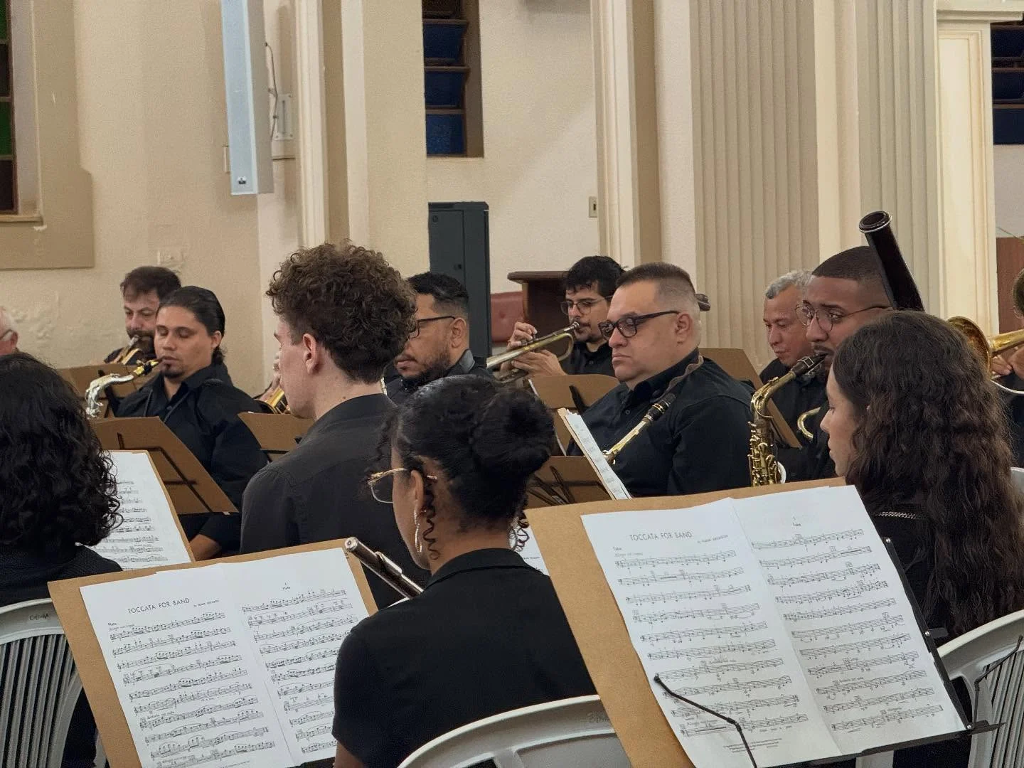 A programação incluiu obras como “Toccata for Band” de Franc Erickson, regida por Caio Albuquerque, “Aurora Borealis” de Rossano Galante, “The Light Eternal” de James Swearingen, “Benediction” de John Stevens, e “Noah’s Ark” de Bert Appermont.