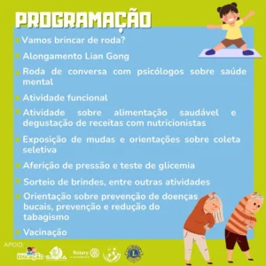 Educação Saúde Saúde em Movimento 27 de maio de 2025 Nesta quinta-feira, das 8h às 10h30, tem atividade gratuita no Salão da Igreja São Benedito! Venha se movimentar, aprender e cuidar de você com a gente! É gratuito e aberto para todas as idades! Compartilhe Facebook Twitter LinkedIn WhatsApp E-mail Você também pode gostar BOLETIM 206 BOLETIM INFORMATIVO 22 de novembro de 2025 Palestra sobre métodos contraceptivos SAÚDE 18 de novembro de 2025 Seguimos firmes no compromisso com o Planejamento Familiar Realizamos hoje a nossa palestra sobre métodos contraceptivos e também a passagem ... Espetáculo “Odus”: Um Mergulho nas Lendas da Cultura Iorubá CULTURA 18 de novembro de 2025 O espetáculo “Odus”, promovido pelo grupo Histórias dos Odus, chega a Cosmópolis no dia 20 de novembro, levando a magia das ... Ultimo dia de inscrições – Concurso público UTILIDADE PÚBLICA 8 de dezembro de 2025 A PREFEITURA MUNICIPAL DE COSMÓPOLIS, por meio de sua Comissão de Concurso Público, torna público na forma prevista no Artigo 37 da ... Formação técnica aos Agentes Comunitários de Saúde e Agentes de Combate as Endemias SAÚDE 1 de dezembro de 2025 Projeto Mais Saúde com Agente é uma parceria da Universidade Federal do Rio Grande do Sul- UFRGS com Ministério da Saúde e Conasems para ... Comunicado: funcionamentos dos serviços essenciais e administrativos UTILIDADE PÚBLICA 19 de novembro de 2025 Atenção! • As repartições que prestam serviços essenciais e de interesse público, com funcionamento ininterrupto, terão expediente ...
