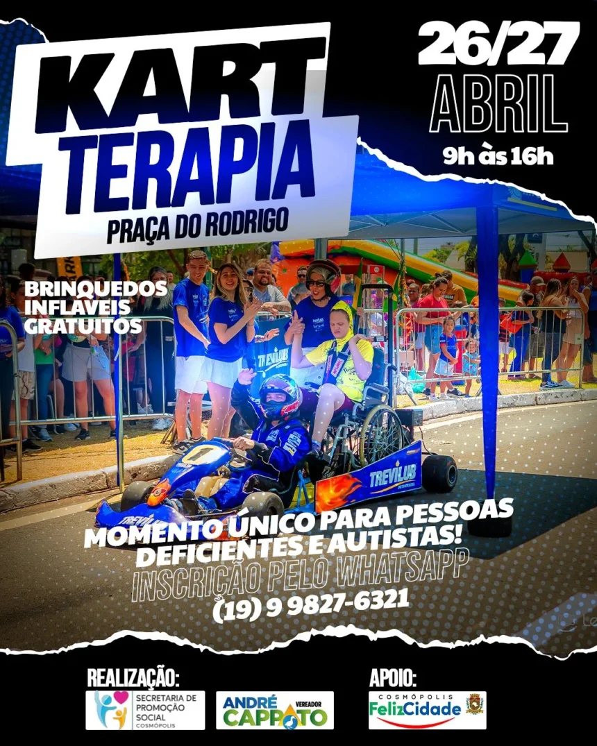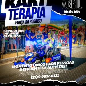 Preparem-se para um final de semana incrível na Praça do Rodrigo! o 1o. Kart Terapia e brinquedos infláveis esperam por vocês nos dias 26 e 27 de abril, das 9h às 16h.